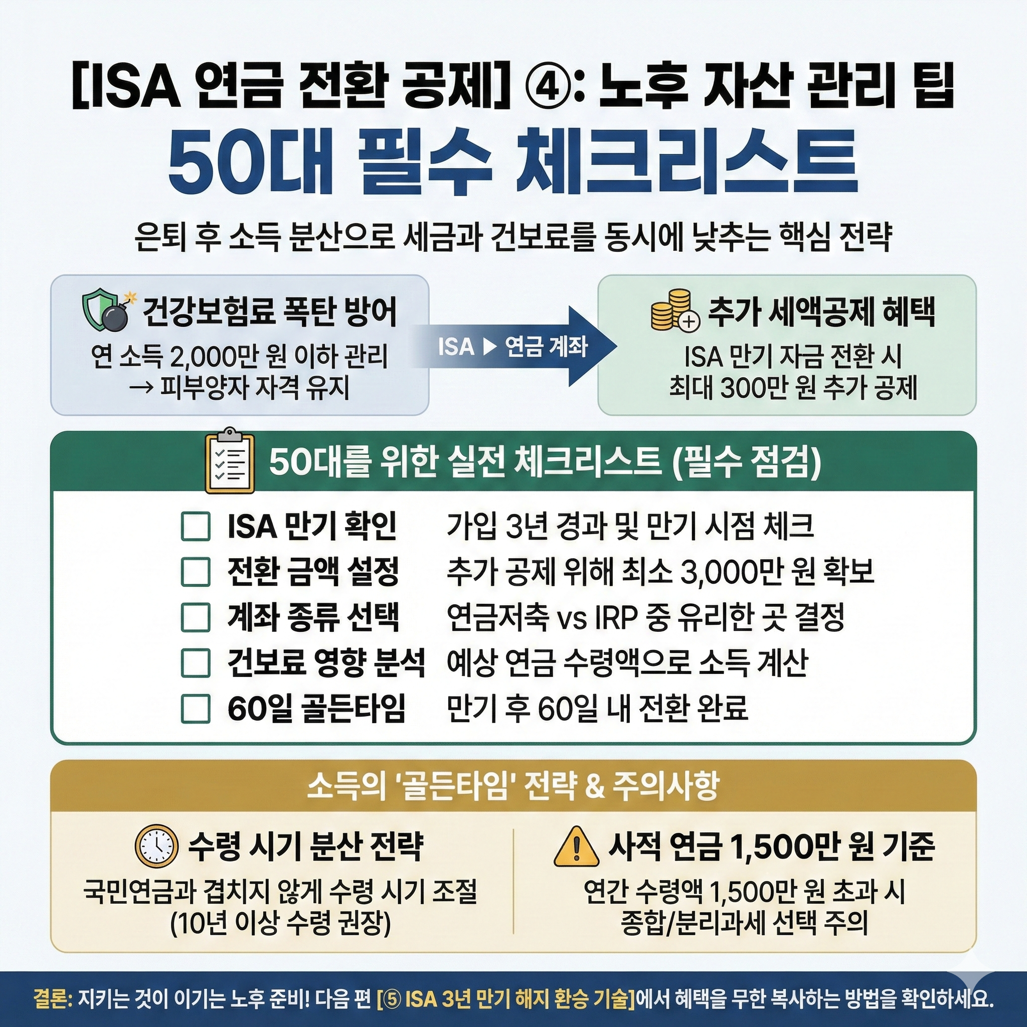 50대를 위한 실전 체크리스트: ISA 연금 전환 공제 노후 자산 관리 팁